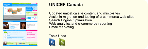 - Publish content on the unicef.ca Web site and other micro-sites